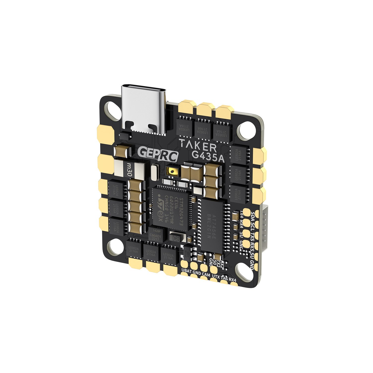 TAKER G4 35A is a newly developed AIO flight control by the GEPRC team. It adopts G473 main control and has more redundant computing power.