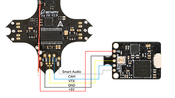 Connection diagram for VTX. Here is the example of M03 25-350mW 5.8G VTX