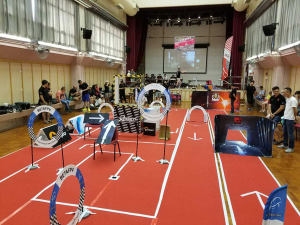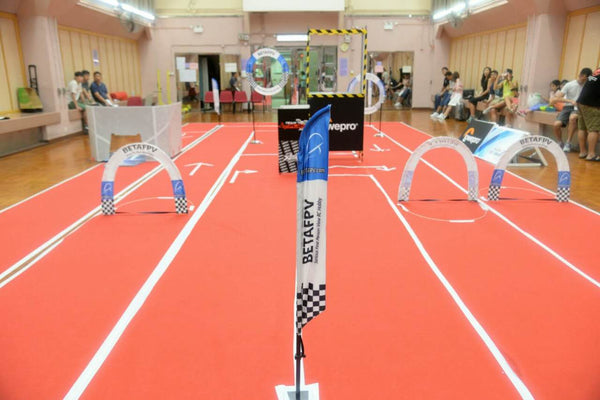 How many flags and gates do we need to set up an indoor FPV Whoop race course? Here is the ample of the HK Team.