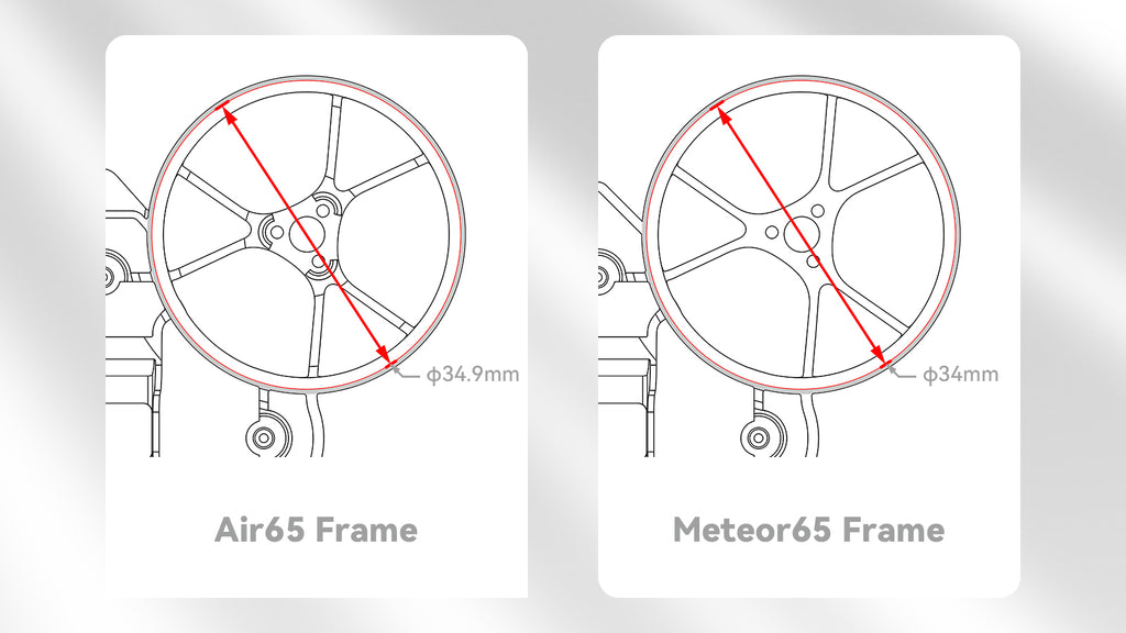• The duct diameter is enlarged from 32mm to 34.9mm, which improves compatibility and avoids propeller strikes.