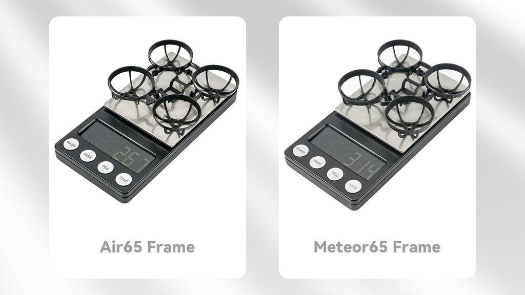 To enhance the flying experience, DIY enthusiasts have diligently worked on reducing the weight of the 1S whoop drones for an ultra-light structure. We upgraded the Meteor65 frame to the Air65 Brushless Whoop Frame, which achieves a remarkable minimum weight of just 2.67 grams. It maintains exceptional strength and durability while introducing a new motor fixed slot, and optimizing a low profile design. It indisputably emerges as the topgallant choice for pilots seeking an unparalleled ultra-light Sub18g 65mm 1S Whoop drone.