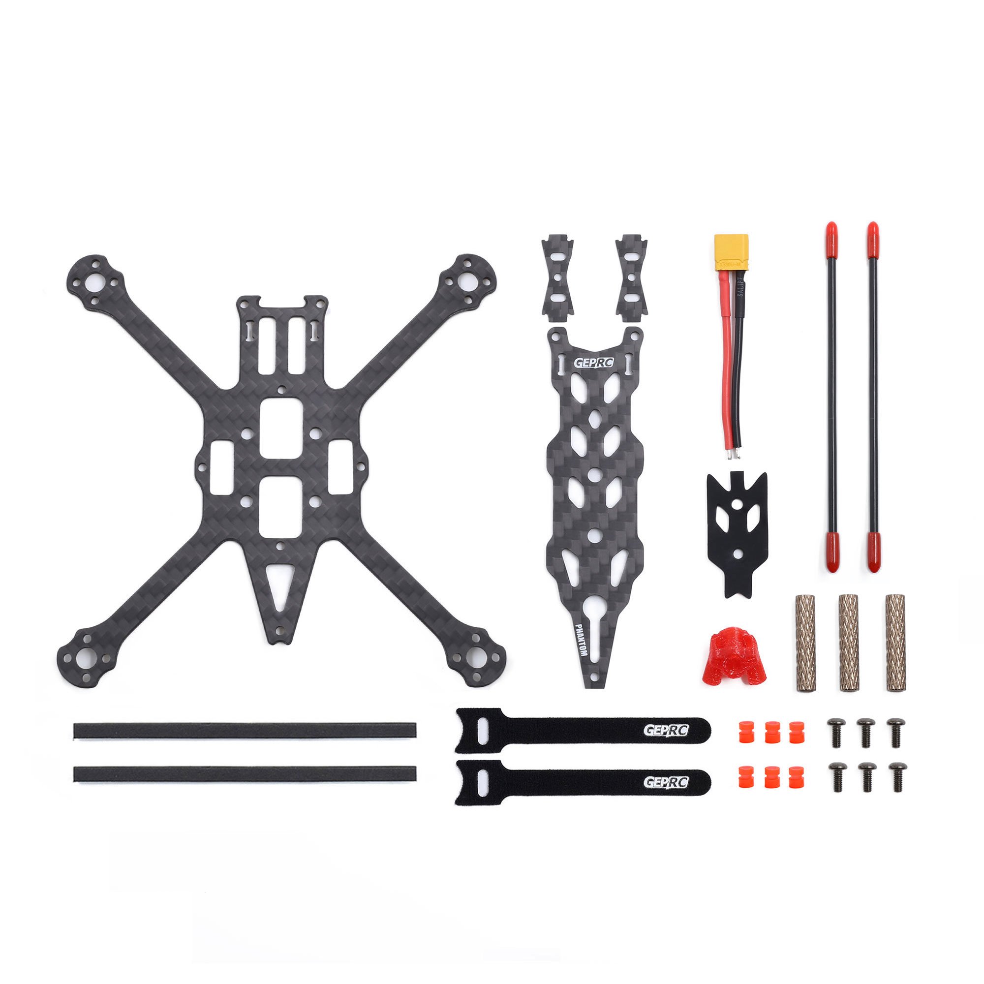 Bottom Plate, Top plate, Side panel, 3D printing, Power cord, Screw fittings, 2x Sponge cushion, 2x Antenna bushing, 2x Battery magic tape, 1x Battery non-Slip Pad