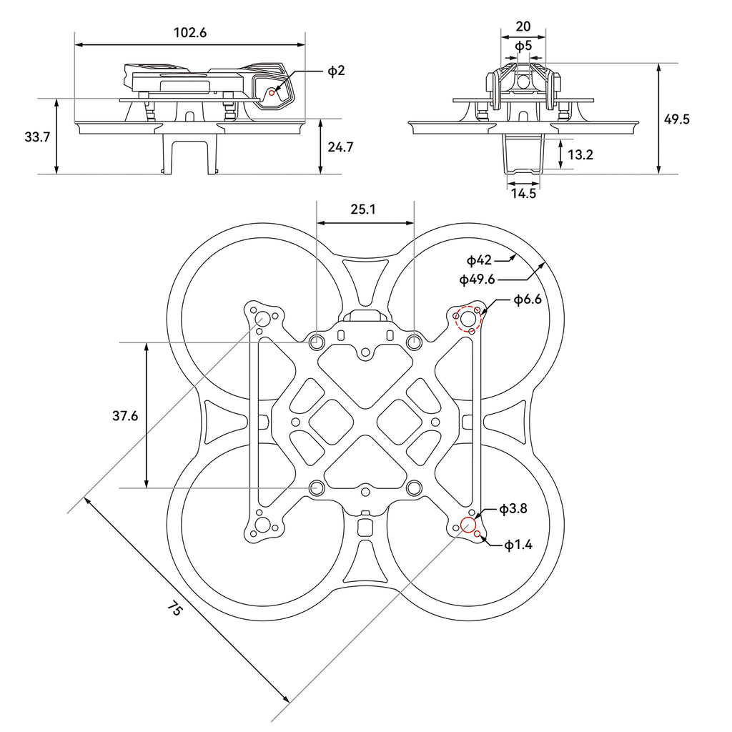 - Motor mounting hole size: 3*M1.4 EQS ø6.6