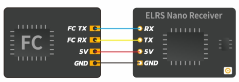 The connection between the ELRS Nano receiver and the FC board is shown below.