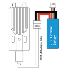 When the dual transmit power exceeds 500mW, the SuperG Nano Transmitter exhibits relatively high power consumption, leading to a reduced battery life. To prolong the transmitter’s usage time, it is advisable to utilize an external battery as a power source.